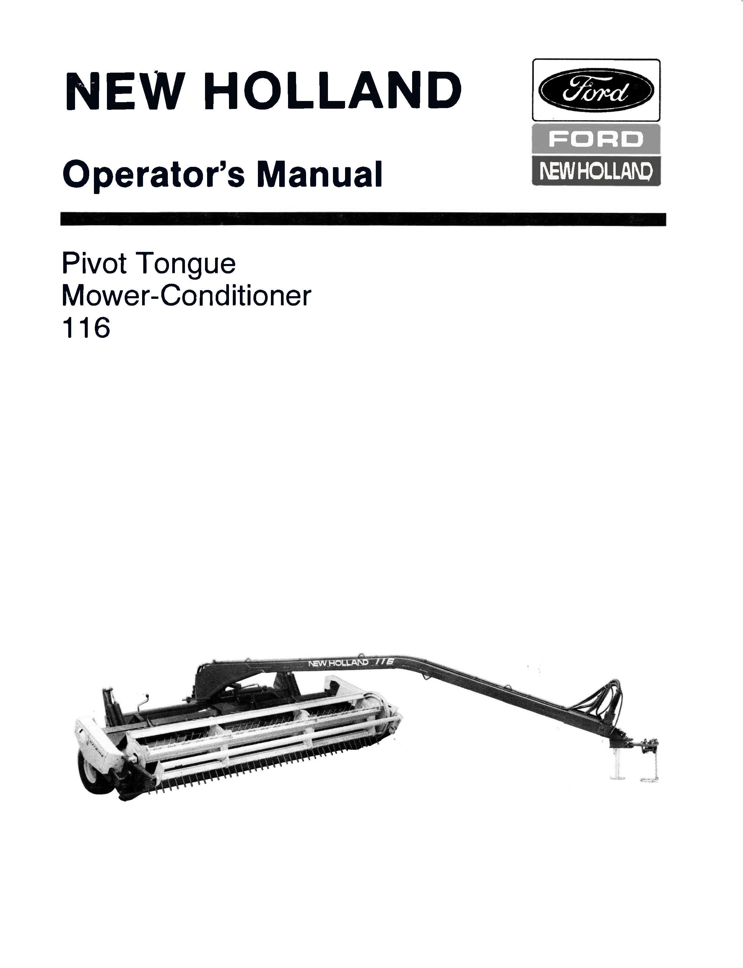 New Holland Pivot Tongue Mower-Conditioner 116 Operator's Manual